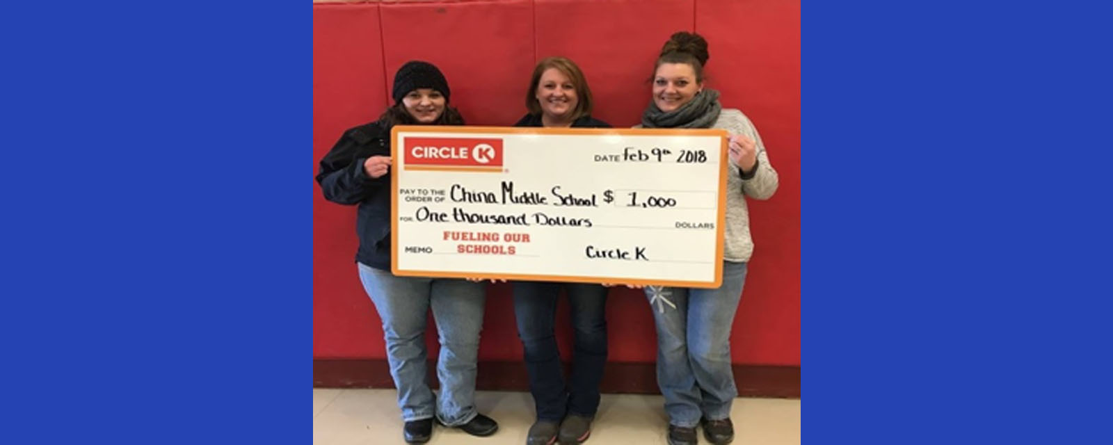 Circle K presented a check for $1000 at the February 9th school assembly. There are three scheduled Fuel-Up Night fundraisers during the school year. In addition to the fundraiser, Circle K donates two $50 gas cards for a drawing after each Fuel-Up Night. Participants are eligible to be entered into the drawing by dropping off their gas receipts to CMS after each Fuel-Up Night. Thank you to all who participated.