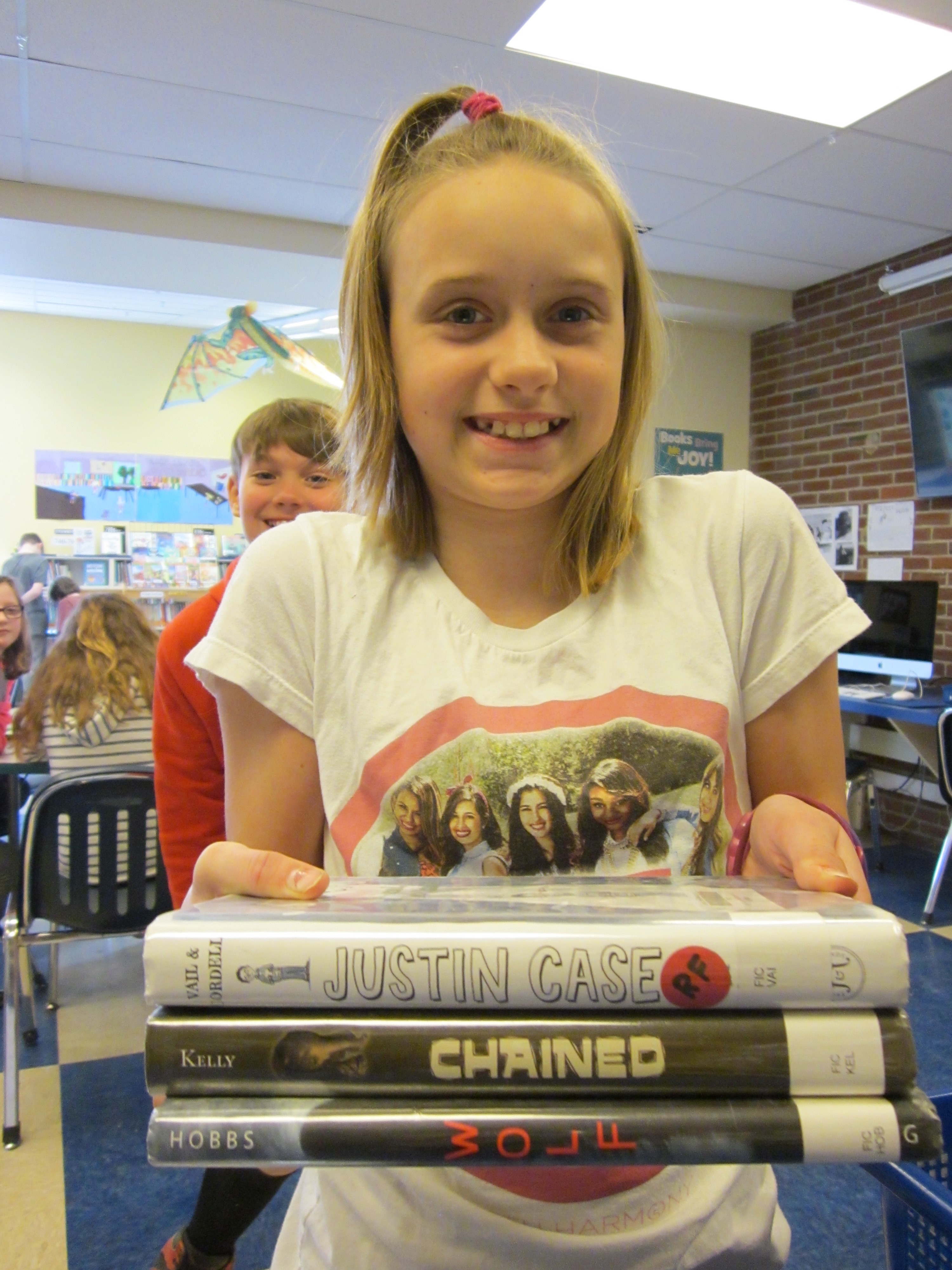 JBS students create book spine poetry to celebrate National Poetry Month.