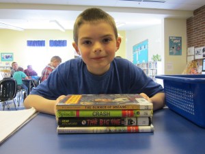 JBS students create book spine poetry to celebrate National Poetry Month.