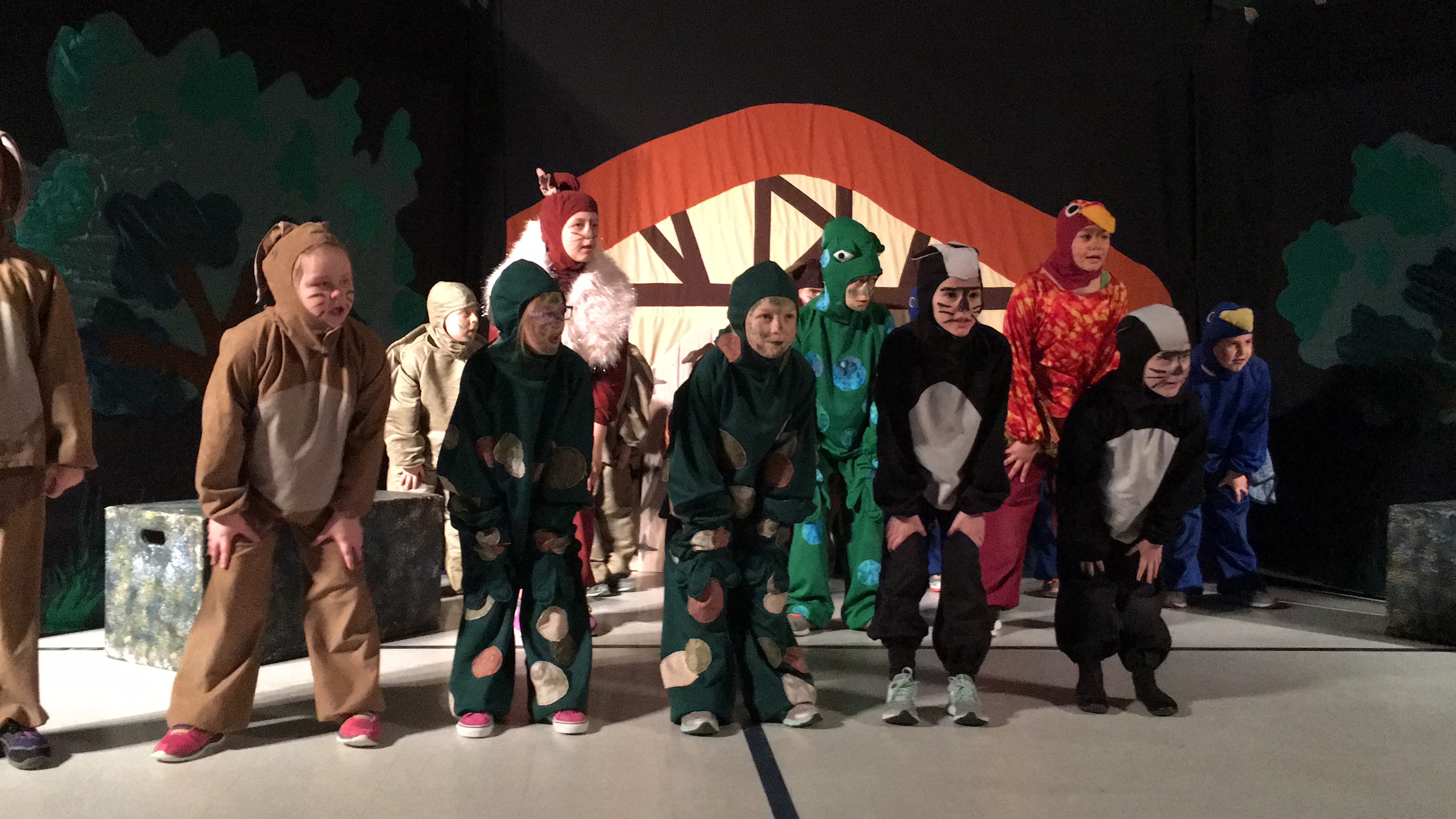 BCS welcomes Missoula Children’s Theatre with open arms each year during the month of March. Students who are interested in being involved in the play pre-register for auditions, though there are many other avenues for students to become involved with Missoula. For children who are not comfortable on stage, there is an opportunity to assist backstage in the role of assistant director and students will often help on the day of the shows, passing out programs and holding the doors. The week before MCT’s arrival, several students along with the guidance of our art teacher, Ms. Wrenn, work to create hallway decorations that coordinate with the play.