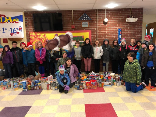 The James H. Bean School’s Student Leadership Team organized our annual Food Drive for the Sidney Food Cupboard. The class that brought in the most items won the opportunity to deliver the items to the food cupboard. On November 19, the students of Mr. Gordon’s fourth-grade class and the members of the student leadership team delivered more than 600 items to help the members of our community during the holiday season. In addition, six complete Thanksgiving meals, donated by the JHB staff, were also delivered.