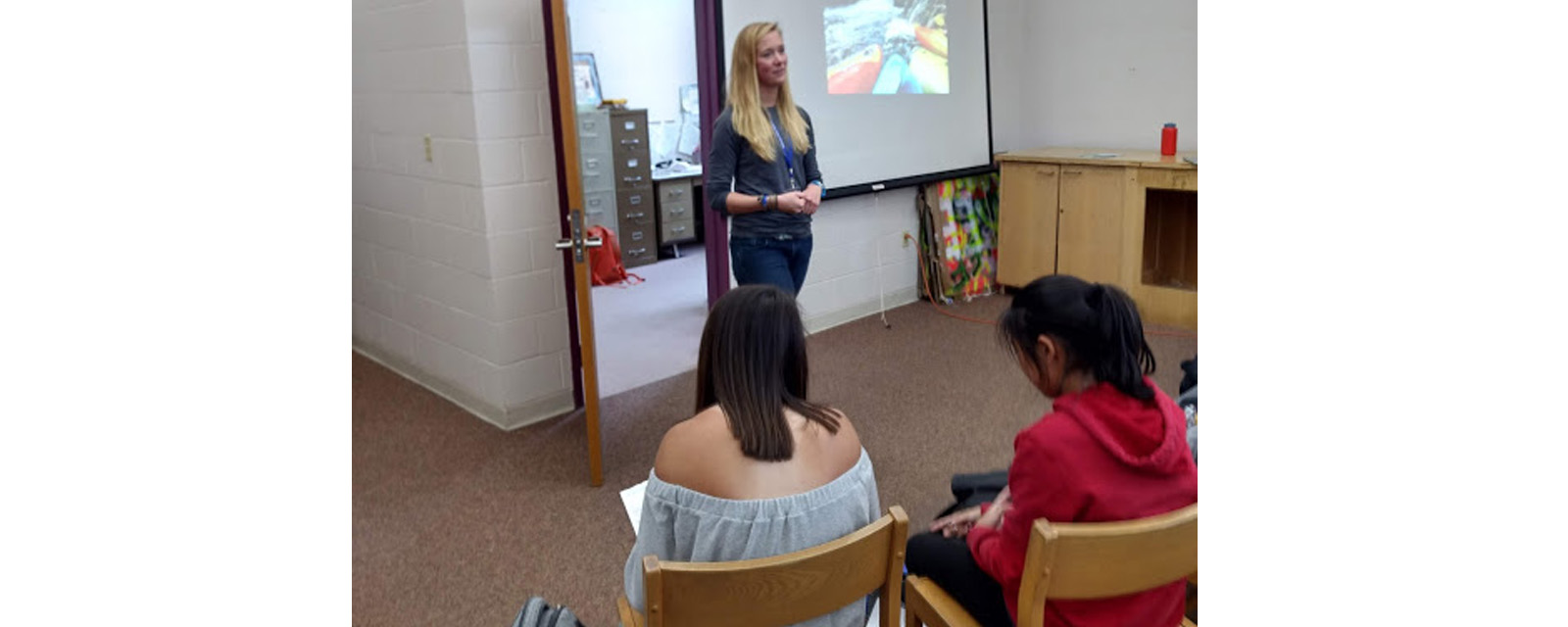 Erin currently works for Outdoor Sports Institute. The mission of OSI is to strengthen communities by connecting them to the outdoors. Erin told the students about her journey from high school to this point in her career. She wanted to visit new places outside of Maine and began her studies at the University of Vermont. She majored in Global Studies and was a member of the school’s swim team. She also studied abroad in Turkey and Spain.