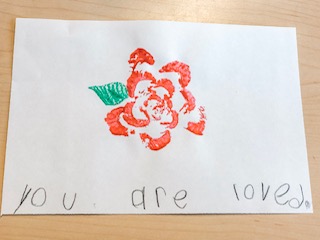 We had our February Kinder Kindness project this week! We made 110 valentines by stamping with celery and paint to make roses for the residents at Lakewood Continuing Care at Inland Hospital. Under each rose print, students wrote: “You are loved.” My students also made 34 handprint hearts that could be used as decorations during Lakewood’s Valentines Day celebration.