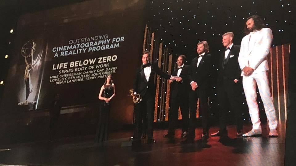 David Lovejoy and the rest of the cinematography team from Life Below Zero just won another Emmy for Outstanding Cinematography on the National Geographic show. This is Lovejoy’s second Emmy in as many years. Congratulations to the whole team and congratulations David! We’re proud of you!