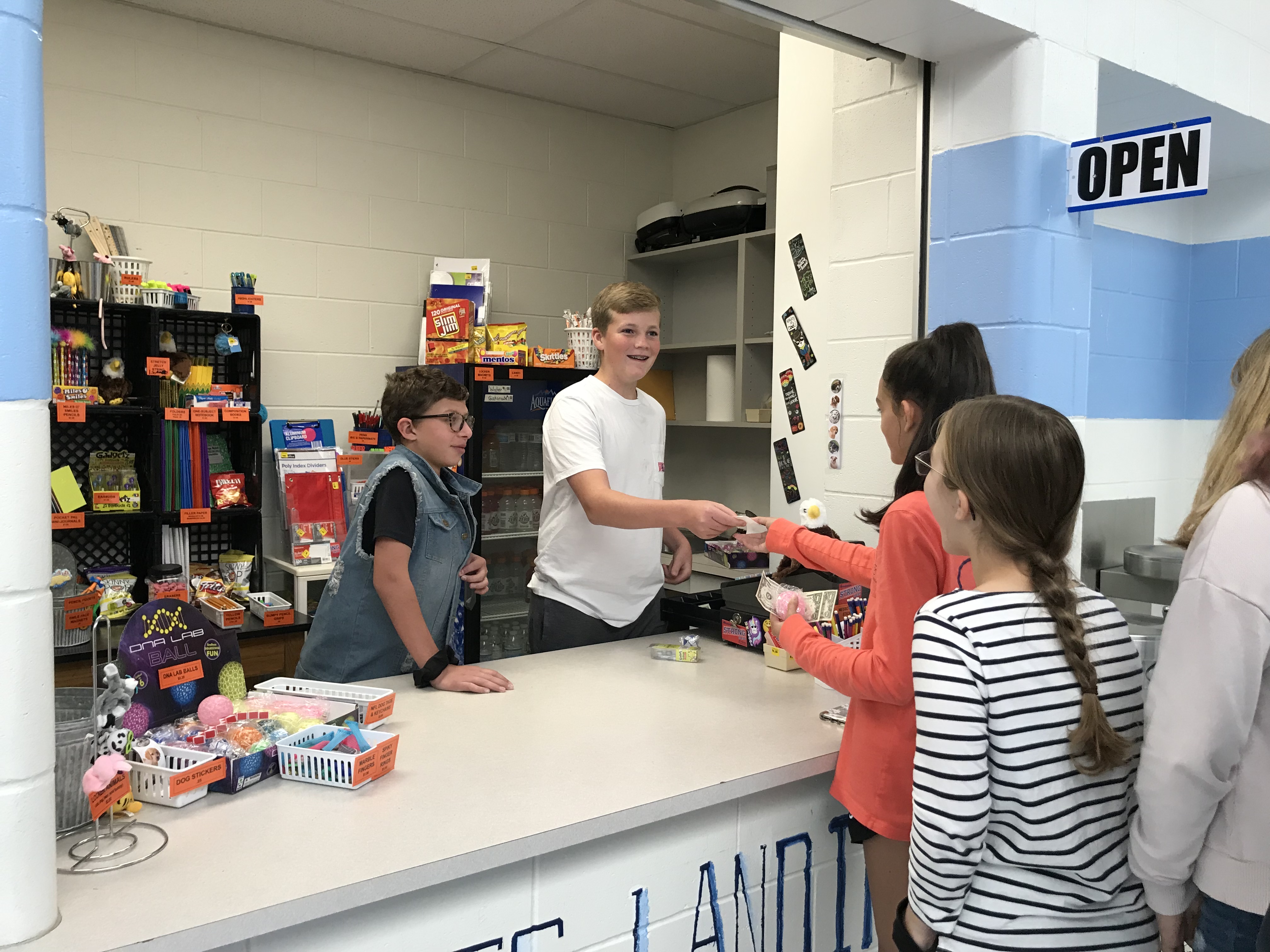 The preparations started last year. Team Boothbay sold freeze pops to earn money, held a vote to choose a name, and started the work of creating a school store. The result was the Eagle’s Landing which had its official grand opening at Curriculum night a few weeks ago.