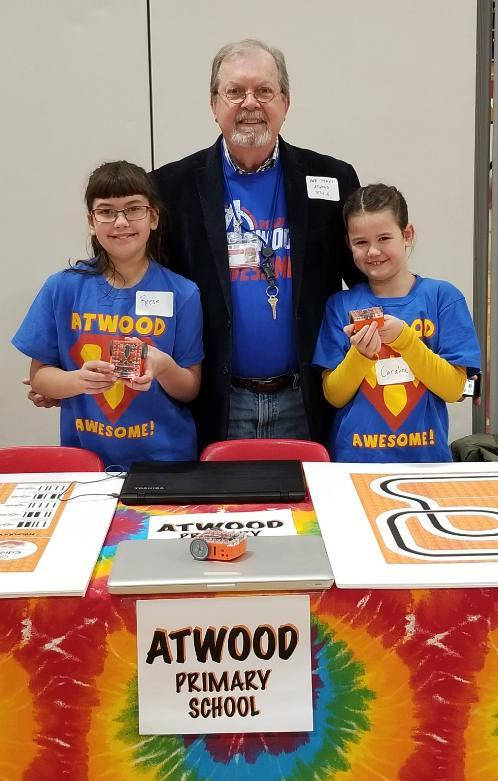 Caraline Lee, Reece Hanscom, and their teacher, Rob Perks, presented elementary robotics at the Superintendent of Schools Educational Showcase at Cony High School on Friday, November 15. They were able to demonstrate the fun and usefulness of coding!