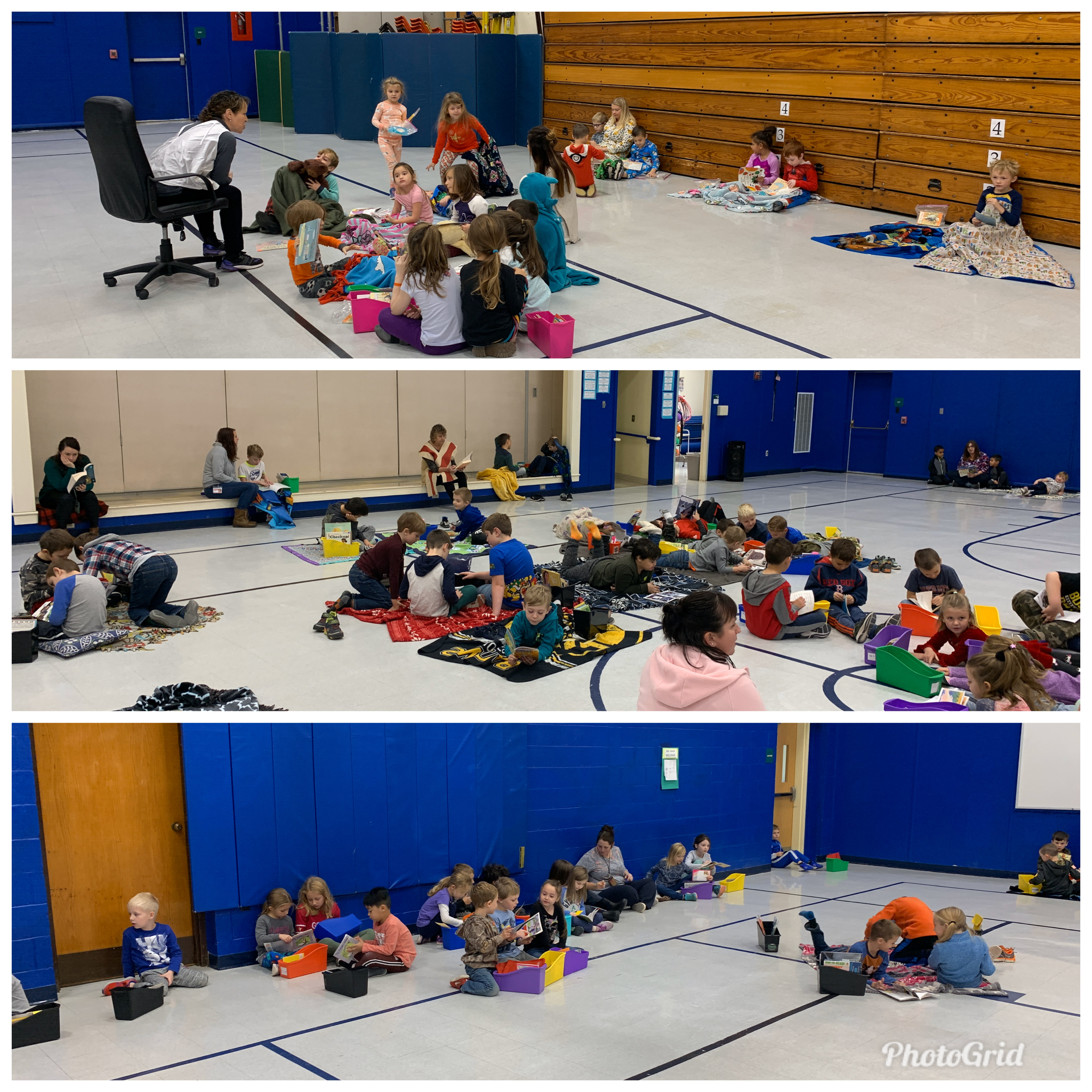 Each teacher scheduled events throughout the week to highlight reading, and we also participated in some school-wide events. On Thursday, November 14th grades K-2 and grades 3-5 each held a “Read-In” event where they all gathered together in the gym to “get cozy and read” for a period of time. Blankets were spread out everywhere, kids were snuggled up with their friends and favorite books, and we all read together! Mrs. “Bacon” brought along her special friend “Mrs. Sunnyside Up” to join in on the fun!!