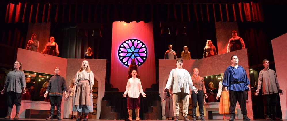 Over the course of the last few months, the students on crew learned carpentry skills, sewing, painting, problem-solving, how to run highly a complex sound and light board and much more as the group prepared for this week’s production of The Hunchback of Notre Dame.