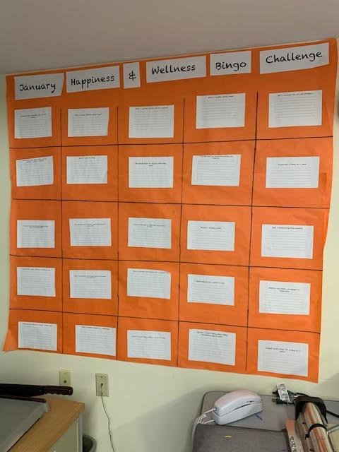 This month, the staff at Williams Elementary School are participating in a staff happiness and wellness Bingo challenge.