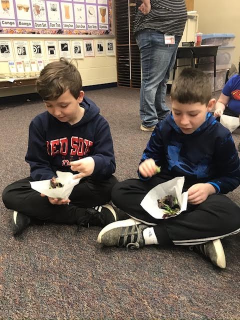 Students in grades 3-5 at Williams Elementary learned about plant varieties and parts during a session with Maine Agriculture in the classroom. Presenters read a book, taught students a movement to remember the six parts of a plant, and then students were invited to look for different varieties of greens in a spring mix. The best part was that students were able to identify and taste test the different varieties in their laboratories!