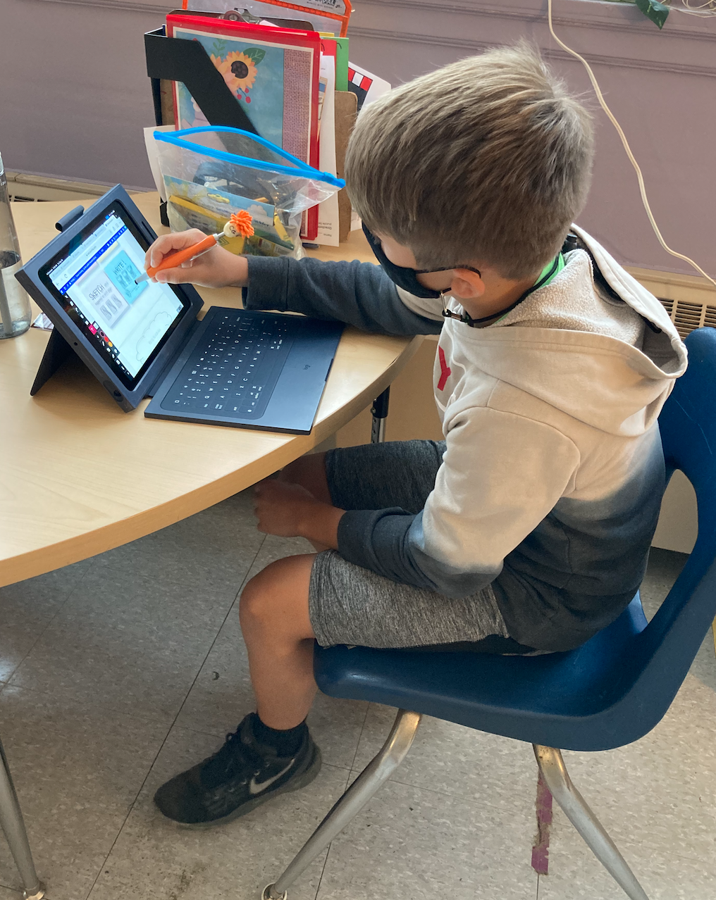 Sullivan says “ Using the styluses helps me write with Kami better.” Cavan says “it is easier to use the stylus as a pen than to try to write with my fingers on my iPad.” Owen says “ the hairy end of the stylus helps me to also clean my iPad.”