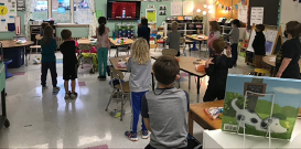 Belgrade Central School has some hearty and marvelous young musicians. The students are learning to create music in new ways. They have braved the cold to be able to sing outdoors, learned about rhythm through doing body percussion, had fun with International Dot Day and followed motions with the composer of “The Dot Song.”