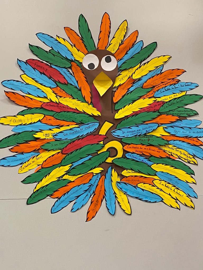 They talked about ways to show appreciation and how each of us is thankful for many different things in our lives. Students and staff filled out Turkey Feathers to go on display to show off what we are all thankful for. The turkeys themselves were made by students in Mr. Tompkins Art Class and the feathers were filled out by all students and staff at CMS. Check out the CMS Thankful Turkeys:
