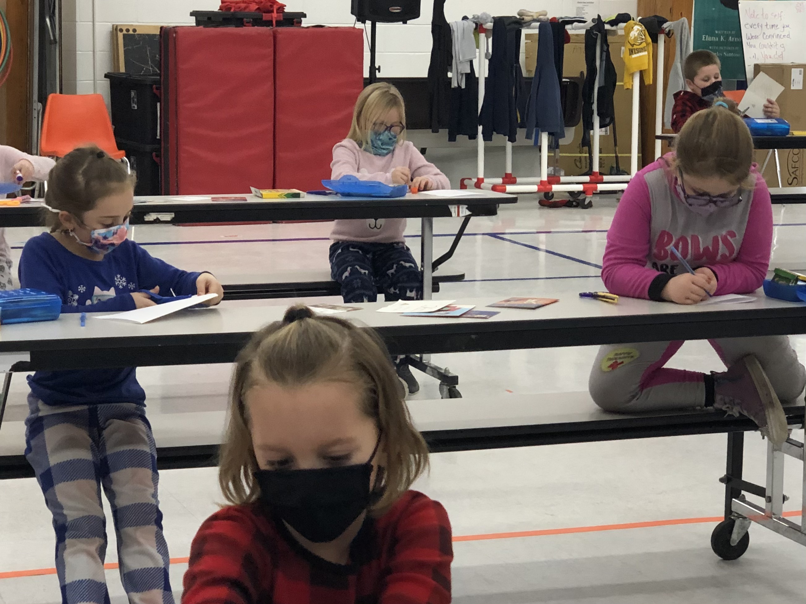 Mrs. Greenleaf’s and Mrs. Pullen’s 2nd grade Atwood students have been making Christmas cards for Bedside Manor while socially distancing.