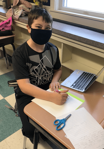 “I wanted to make a card for the elderly to make them happy because they can’t see their family,” said Bella (Grade 5).