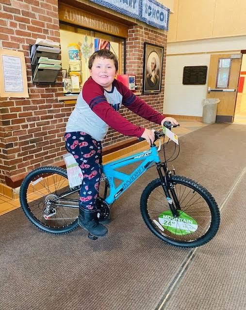 Over the past summer, Jamon McDaniel participated in the Maine DOE’s Read to Ride summer reading challenge. A winner from each county was announced in October. In December, we received the gift cards and Jamon was able to pick out the bike he wanted at Walmart. In the photo you can see Jamon sitting proudly on his new bike that he won from the Freemasons.