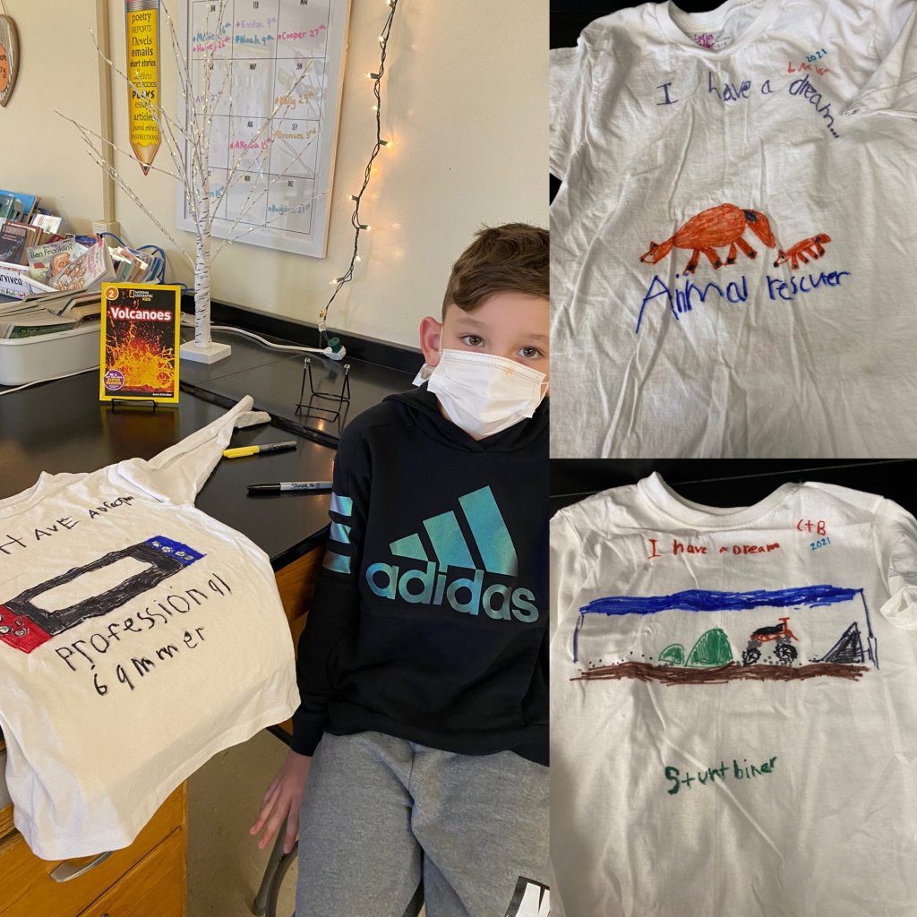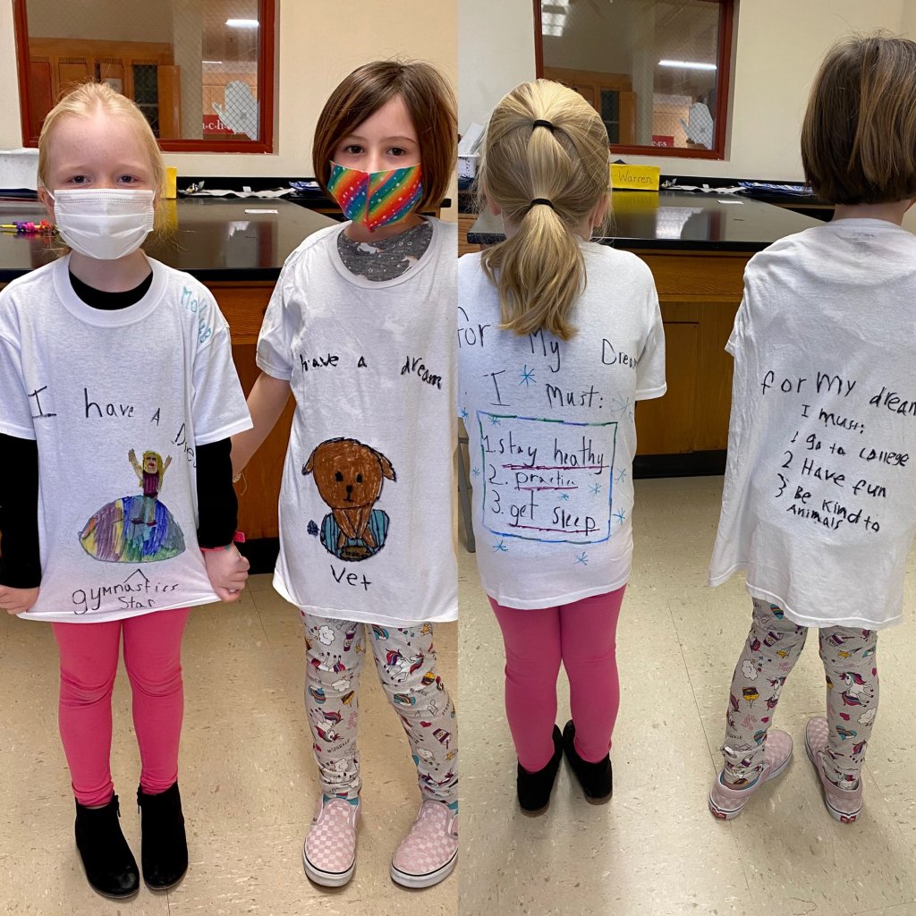 Our WES 3rd graders have been learning about Martin Luther King Jr. and writing about their own dreams. Check out the wonderful shirts they created last Friday to share their dreams and their plans to make them come true. Our 3rd graders are going to do amazing things!