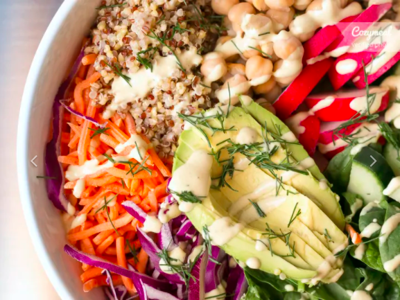 peanut sauce, a nourishing and healthy Buddha Bowl, and wonderful immune boosting turmeric tahini salad dressing.