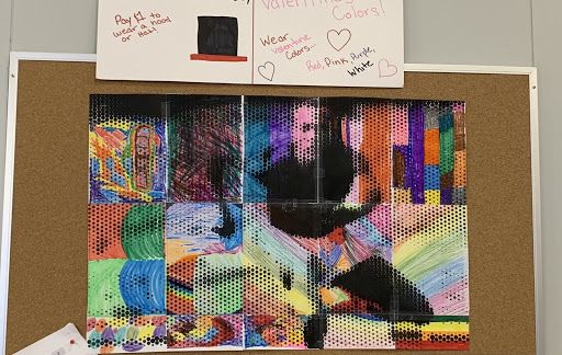 Last month, CMS Honored Black History month with a school wide tile art project. During advisory, each student colored a ‘tile’. When pieced together the tiles created the portrait of a famous figure. The artwork was displayed in the windows along with quotes or facts about the individual.