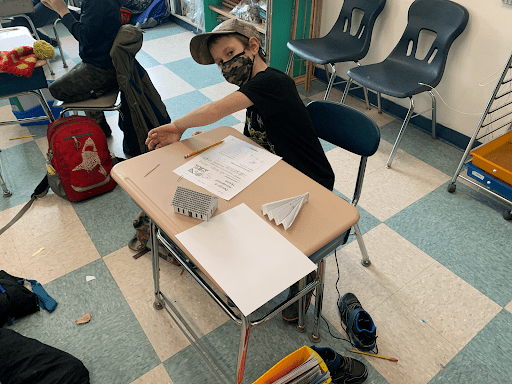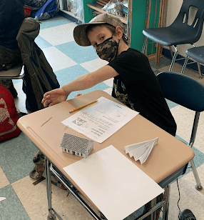 One activity we did was designing ways to keep a house and its roof from blowing away in a windstorm. Students had to build their paper houses and create a wind maker from paper. Then they were given some materials such as extra paper, toothpicks, paper clips, and stickers and had to use these materials to design their windproof house. They made a plan for their first design, tested it out, and then made adjustments for a second design.