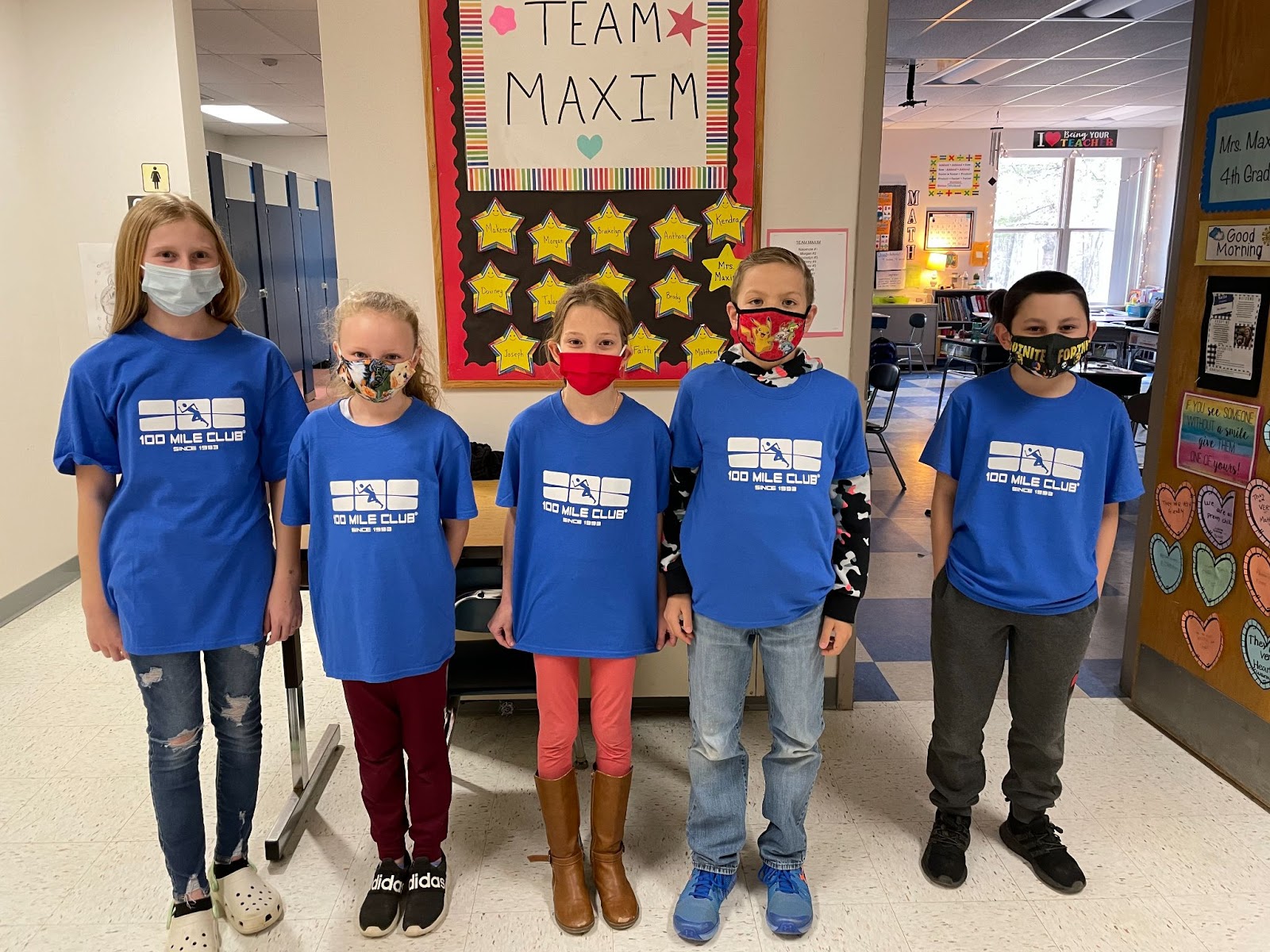 Team Maxim has had some awesome achievements recognized recently for the 100 Mile Club! The top achievers are pictured above (left to right). Brookelyn Finley (81 miles), Roxie Stephenson (93 miles), Mackenzie Bowler (55 miles), Anthony Gagnon (50 miles), and Joey Shaw (44 miles). Morgan Buswell, was not in the photo, but has walked (90 miles)! Way to go, kids! Keep up the good work. 🏃🏼♀️🏃🏽
