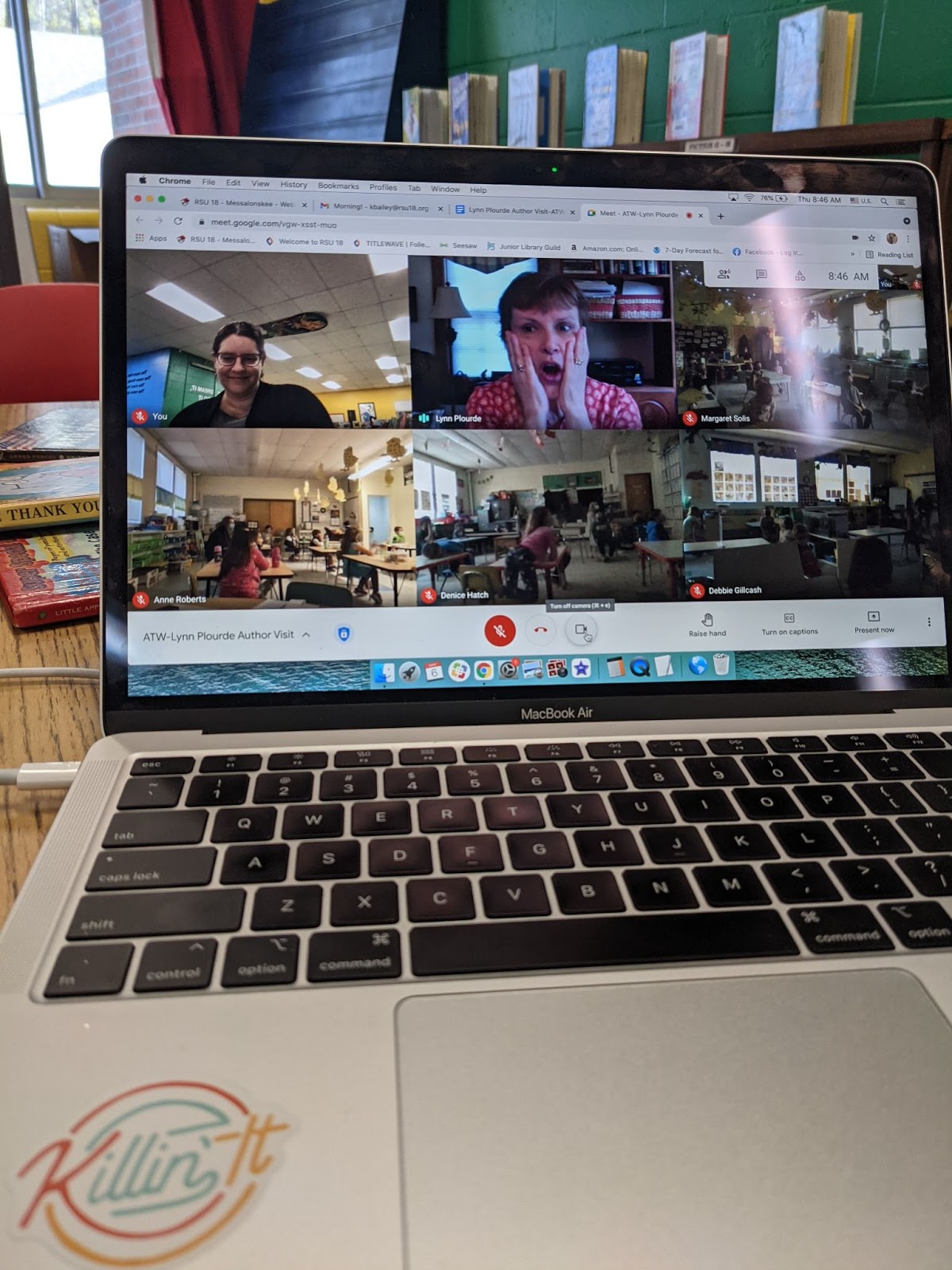 No in-person author visits this year? No problem! The ever dynamic and flexible Maine author Lynn Plourde presented to remote and in person Pre-K – 2 students at Atwood Primary on May 6th and one for 3-5 students at Williams Elementary (including remote students), on May 12.