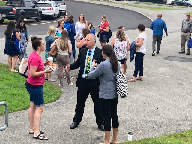 The Lifestyles Team has played a huge role in the opening day for faculty and staff for the last several years and this year they truly outdid themselves. Staff members arrived at MHS through a welcome back pavilion featuring a tent, banners, tables, balloons, and music. Staff also got to enjoy a photo booth station, a raffle for special prizes, an array of breakfast treats courtesy of Barbara Bonnell and the Nutrition Staff, and Aroma Joe’s coffee service.