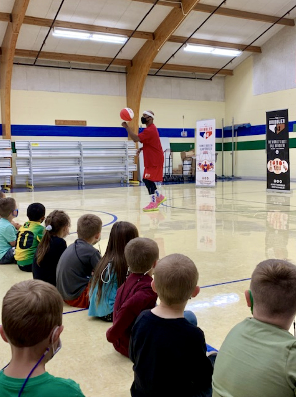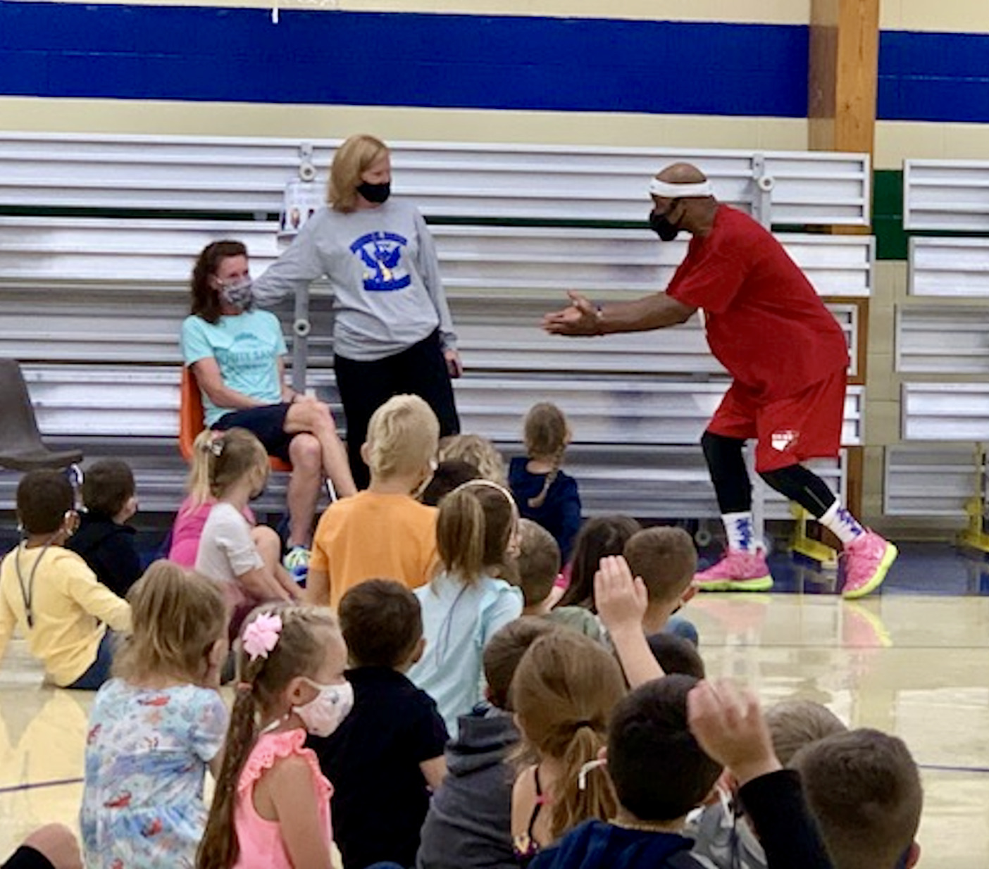 Students at the James H. Bean School were visited by Corey “The Dribbler.” Corey is a former Harlem Globetrotter and Youth Motivational Speaker. Students learned about the importance of respect, responsibility, and having a positive attitude, and they also enjoyed seeing this four-time Guinness World Record holder perform some pretty cool tricks. JHB’s very own basketball star, Mrs. Bradstreet, did an awesome job being a volunteer during the presentation!