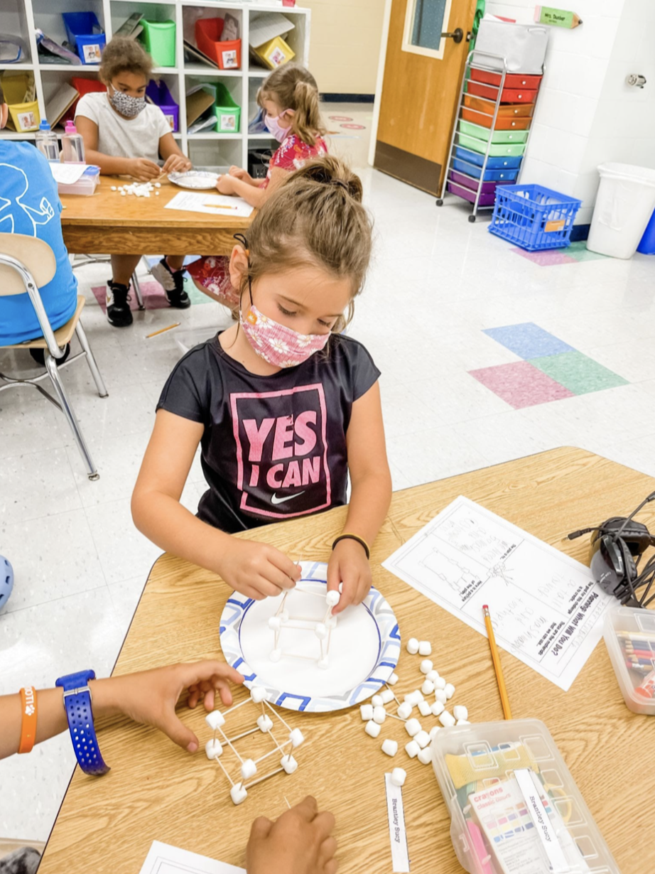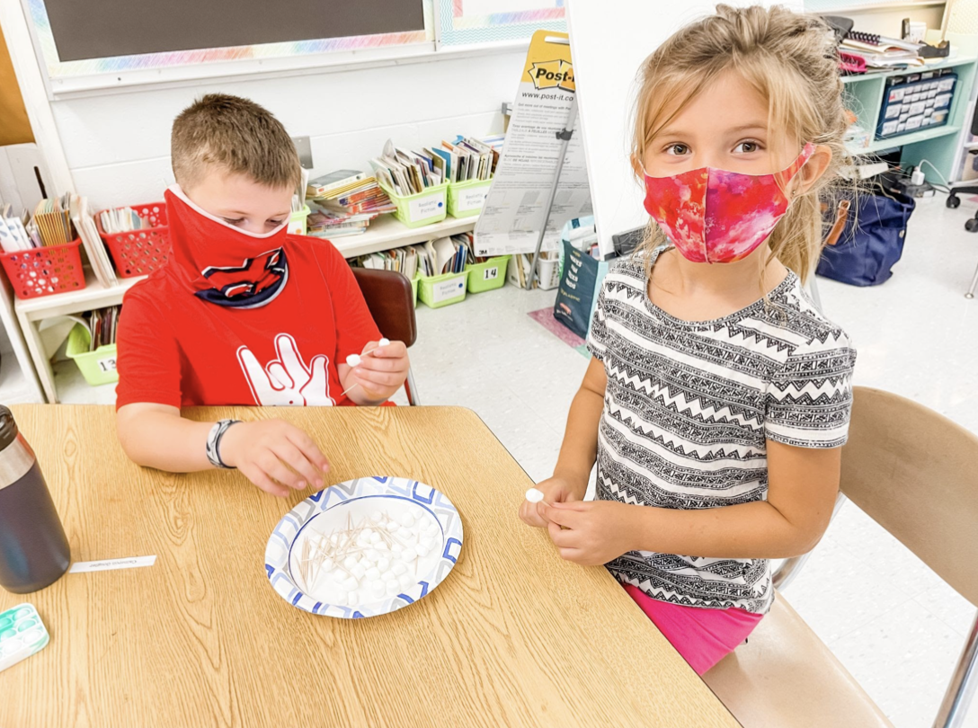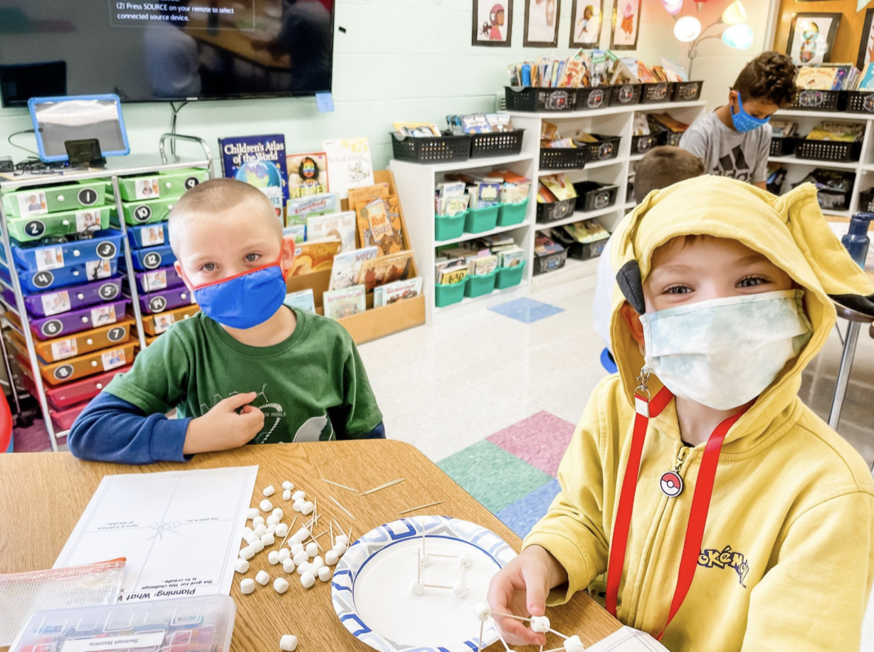 Mrs. Dunbar’s class has been learning about the importance of having a growth mindset when learning new things. They have been reading many books about growth mindset but their favorite book was Your Fantastic Elastic Brain. After reading Your Fantastic Elastic Brain, the students made a large poster of the brain that showed ways to help create connections in the brain. One Friday afternoon, the students practiced using growth mindset during a marshmallow and toothpick tower challenge. The students worked in pairs to design and create the tallest tower using limited resources. Every team had to stay positive as well as “check and adjust” their plan to be successful. Here are some pictures of the action!
