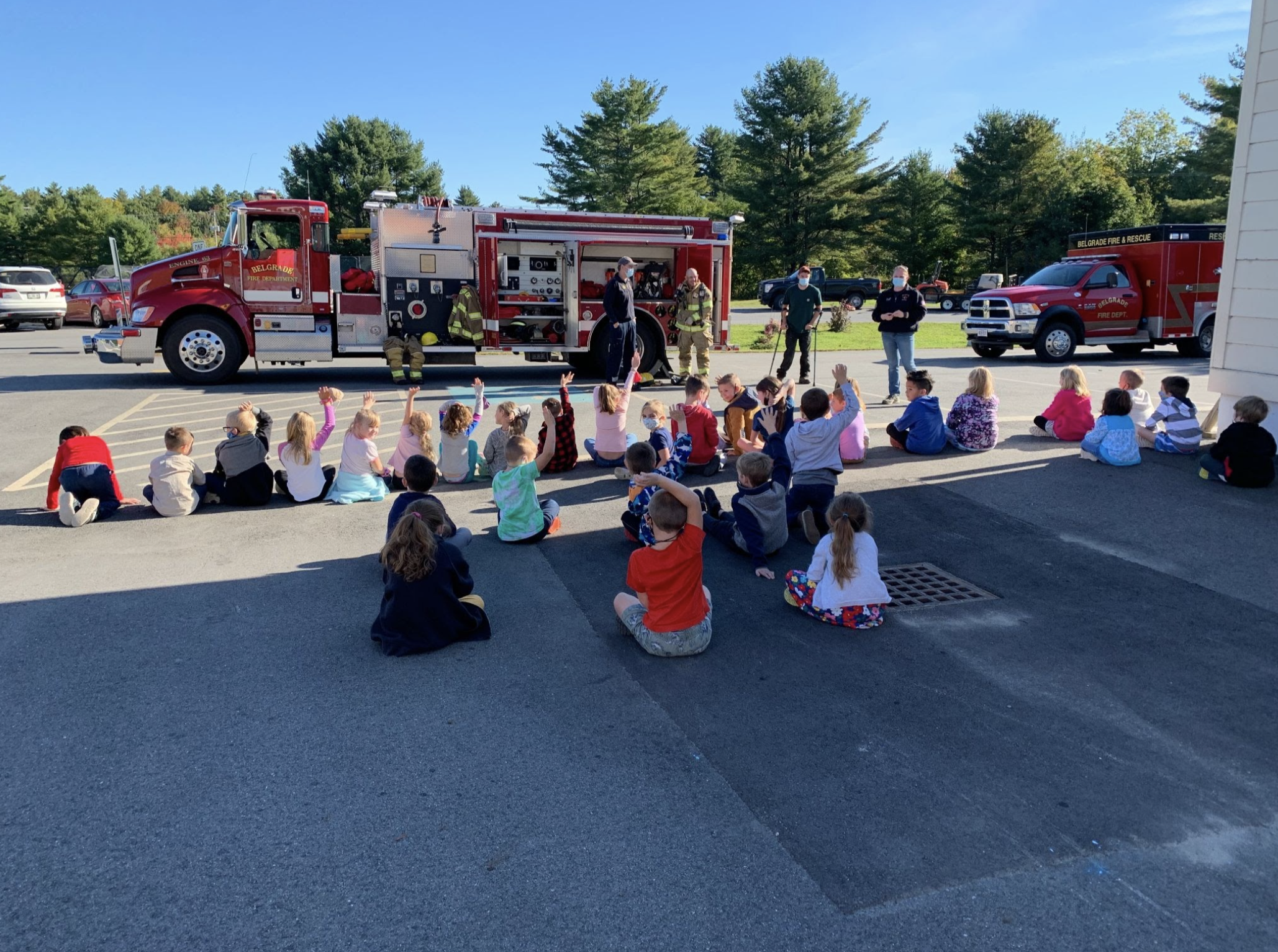 Did you know that October is Fire Prevention and Safety Awareness month? Students in grades pre-K through first at Belgrade Central School had a special visit from some of the brave firefighters from Belgrade Fire and Rescue on October 6th. They were able to talk with the firefighters about what they should do in a fire emergency and they also were able to see the pumper truck and rescue truck with all of the gear and equipment on board. What a fun day!