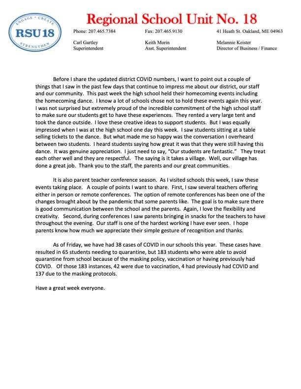 Superintendent Gartley’s Weekly Update 10/17/21 17Oct 2021Add a comment Share this: Click to share on X (Opens in new window) X Click to share on Facebook (Opens in new window) Facebook Like Loading...