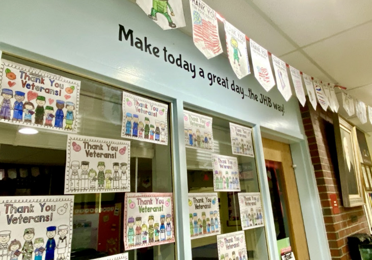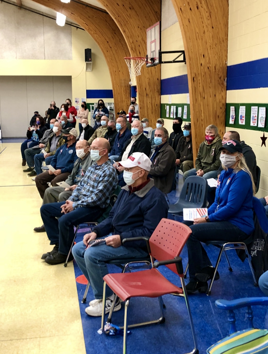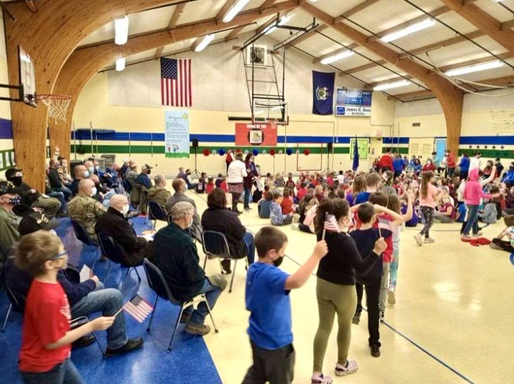Last Friday the James H. Bean School honored our veterans with a very special Veterans Day assembly. Smiling students greeted veterans at the door, thanking them for their service before escorting them to their seats. Patriotic music flooded the hallways as students from PreK through grade five made their way to the gymnasium, proudly waving their American flags. Members of Sidney Girl Scout Troop 408 brought in the American flag, and all stood to recite the Pledge of Allegiance together. Several students shared what they’ve learned about the origins of Veterans Day, then fifth grade students shared “Thank You, Veterans, Thank You,” a song reworded for the occasion and led by district music teacher Sue Paradis. During the “Armed Forces Melody,” veterans of each branch stood to be recognized for their service. Messalonskee High School students Spencer Weight and Ryan Wright joined the celebration with their renditions of our “National Anthem” and “Taps,” respectively. As the assembly drew to a close, students and teachers lined the JHB walkway to wave their flags and cheer for our veterans! JHB students gained a better understanding of why November 11th is a day we honor all of our veterans for their service to our country. #WeAreRSU18