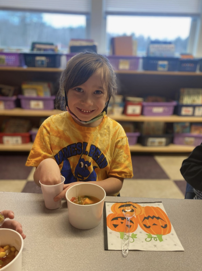The James H. Bean School second graders in Mrs. Bibeau’s and Mrs. Ridgeway’s classrooms read the story Stone Soup this month while working on text-to-self and text-to-world connections. During grammar, students worked to make “soup-er” sentences. Each student brought in one ingredient for the soup and it bubbled away all day until it was time to enjoy the fruits of their labor. They learned the valuable lesson that sharing benefits everyone who contributes. #WeAreRSU18