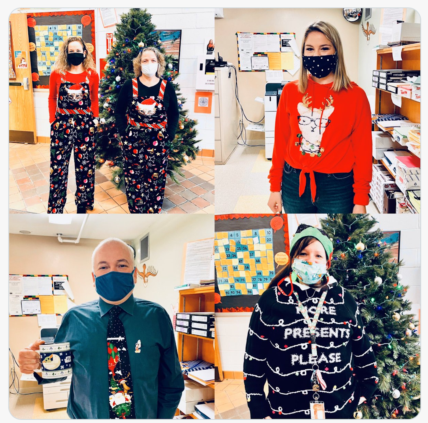The staff at WES are enjoying the “December to Remember” calendar. Each day has a special theme. Today’s theme was, “wear something that makes people smile!” Falalala Fridays are for staff and students. 12/10 is a “Whiteout” as we all hope for snow for the holidays. #WeAreRSU18 #WESproud18