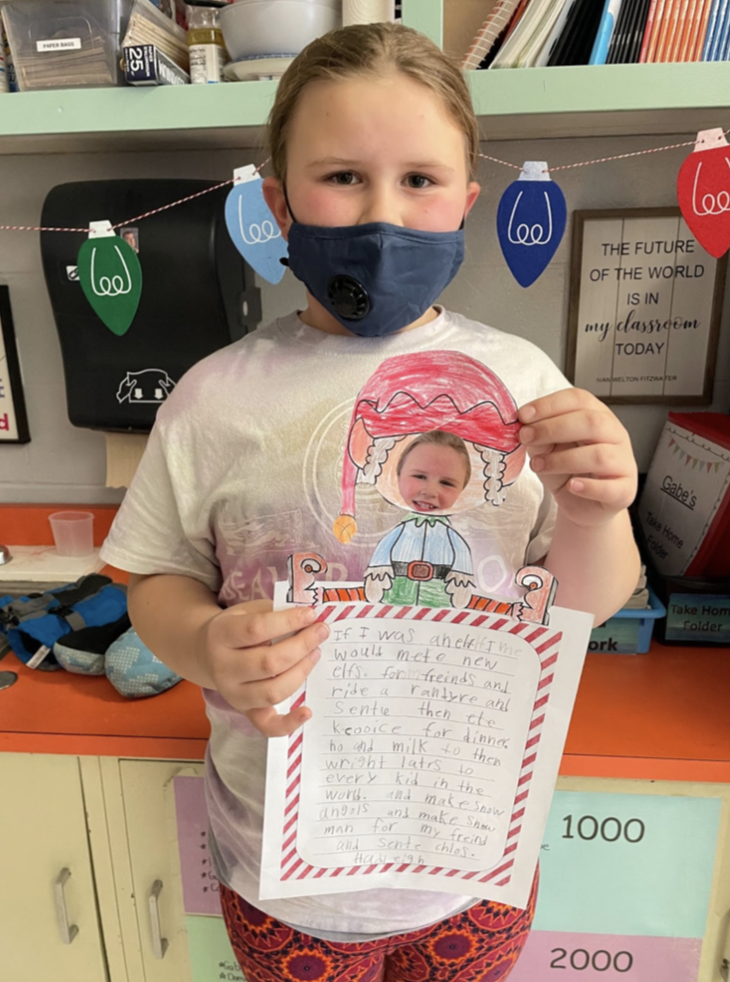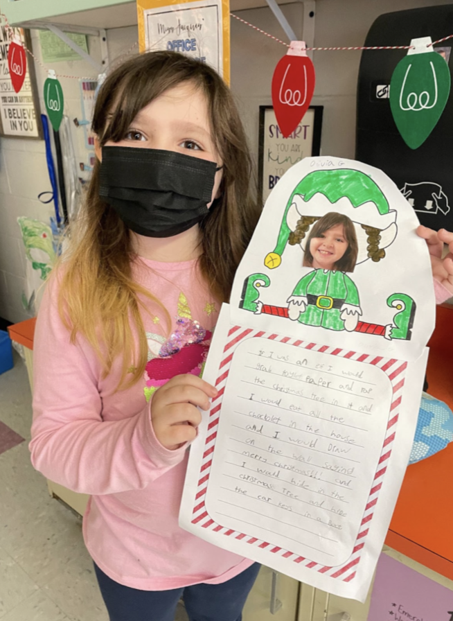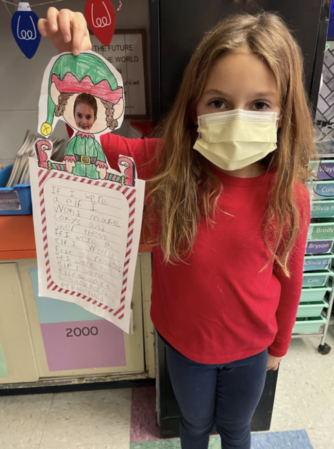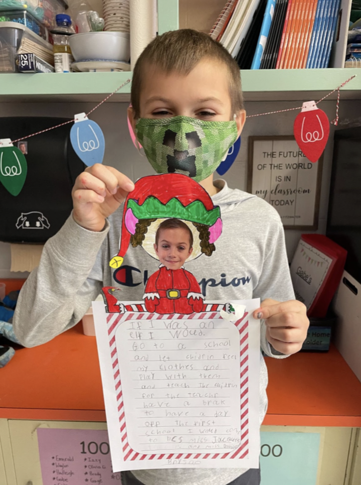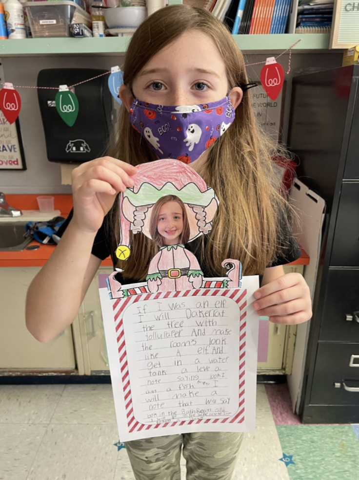 Miss Jacques’ class recently engaged in a festive writing piece! Students had to begin their writing with “If I was an elf I…” Students were encouraged to be creative and choose what kind of elf they wanted to be in their stories. They could choose to be kind, sneaky, funny, or any other characteristics!