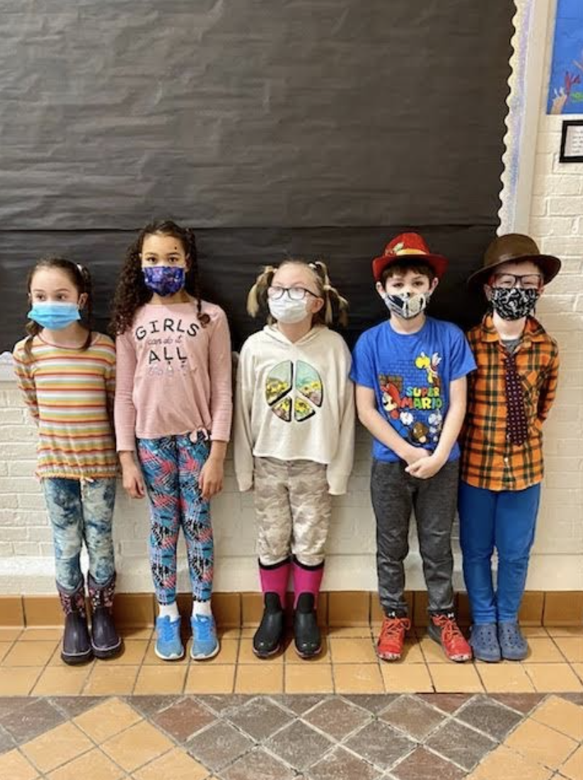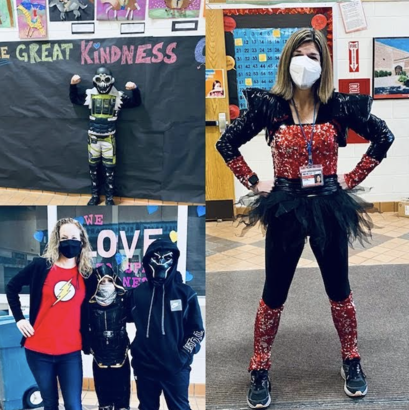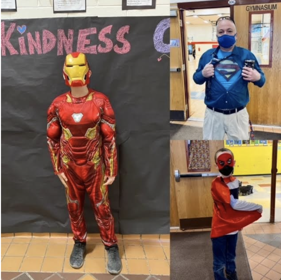 Check out Ms. Kinney’s third graders with their mismatched outfits, crazy hair, and crazy hats for “Powered By Kindness” Superhero Day! WES staff and students go all out for Spirit Week.