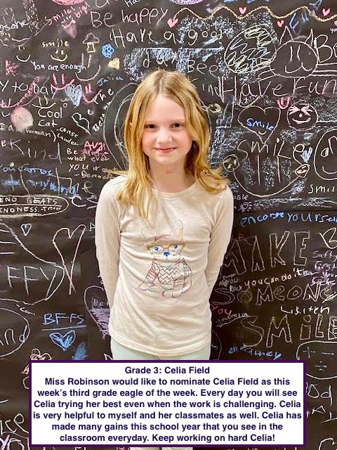 Congratulations Celia Field (grade 3), Hailey Fleury (grade 4), and Faith Hayes (grade 5) on earning the title of Eagles of the Week this week! #WeAreRSU18
