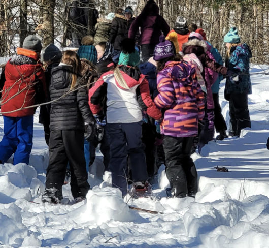 To help alleviate some of the winter doldrums, the 4th grade team at James H. Bean decided to utilize the many pairs of snowshoes that have been in storage since last winter. It was a beautiful day outside, and with a fresh foot-and-a-half of snow to play in, the class took advantage of it and went hiking through the snow on the trails. There’s SNOW place like JHB! #WeAreRSU18