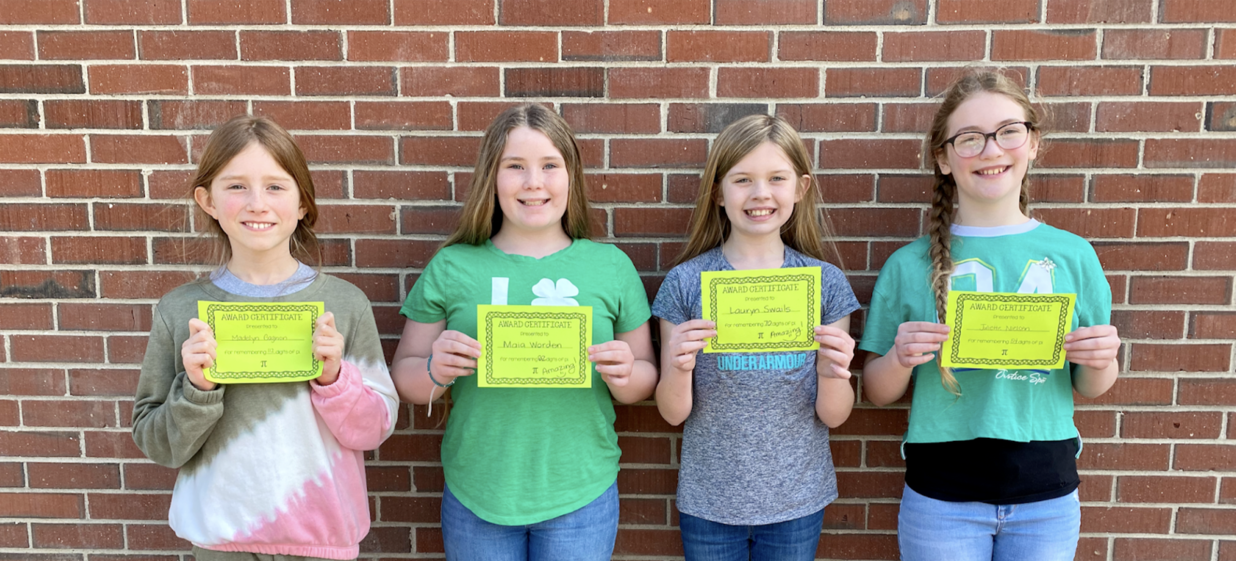 JHB’s fifth graders celebrated Pi during the week of March 14th. Pi is an irrational number that represents the ratio of a circle’s circumference to its diameter. We generally round Pi to 3.14, but it actually has an infinite number of digits. Mrs. Hopper and Ms. Hutchinson challenged their fifth graders to learn the first ten digits of Pi, but many students far surpassed that goal. Madelyn Gagnon memorized an astounding 112 digits of Pi!! Runners up were Maia Worden with 82 digits, Lauryn Swails with 70 digits, and Juliette Neilsen with 54 digits. Let’s give them all a big ROUND of applause! #WeAreRSU18