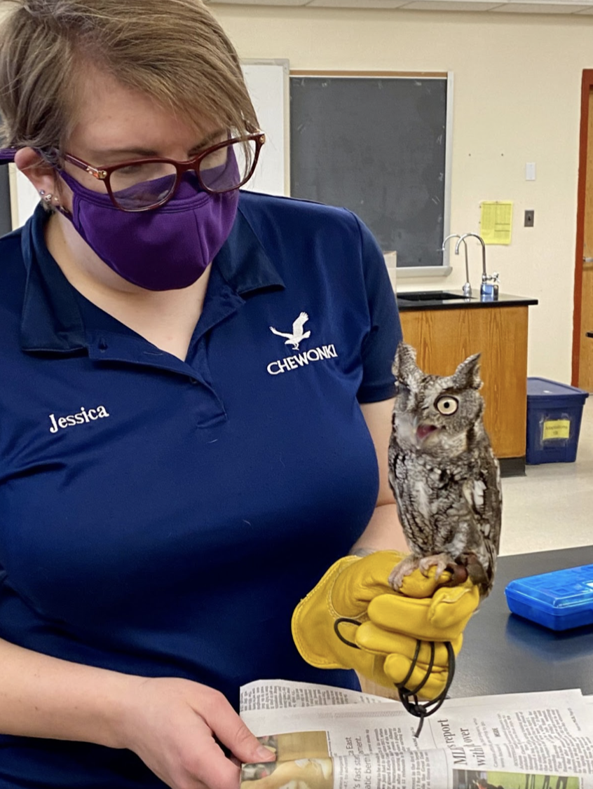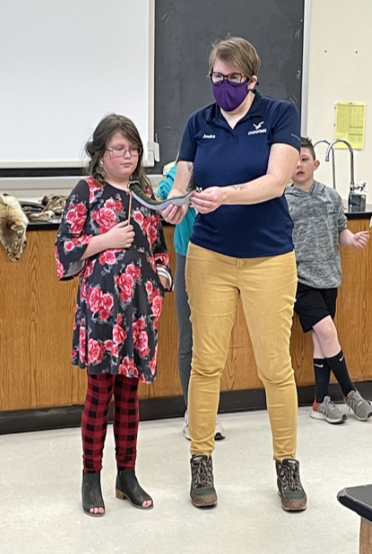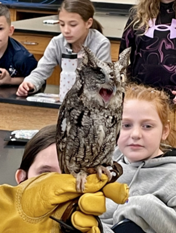 Did you know that a butterfly’s tastebuds are located on the back of its legs? Students at WES certainty did not! Today at school the third graders at Williams Elementary enjoyed an engaging presentation by Jessica from Chewonki – and learned a tremendous amount about animal adaptations! Students learned about a variety of beaks and feet while identifying the advantages and usefulness each adaptation provided the animals. Chewonki even brought in live animals for the students to observe. The third graders were able to see a live stick bug and learned that younger stick bugs are green to blend in with the leaves that they eat, and as they grow their coloring changes to brown to help them blend in with branches. Students also got to meet Ella, a five foot long corn snake. They learned that a snake’s nose is located in its mouth. The final amazing creature that students go to meet was Woden the eastern screech owl. Little Woden was so adorable. She survived being hit by a car and had a successful surgery to remove her right eye. Also during the presentation students had opportunities to touch coyote fur, a snake skin, and the wing of an owl. The Chewonki presentation was the perfect addition to the students’ animal adaptation unit. #WeAreRSU18