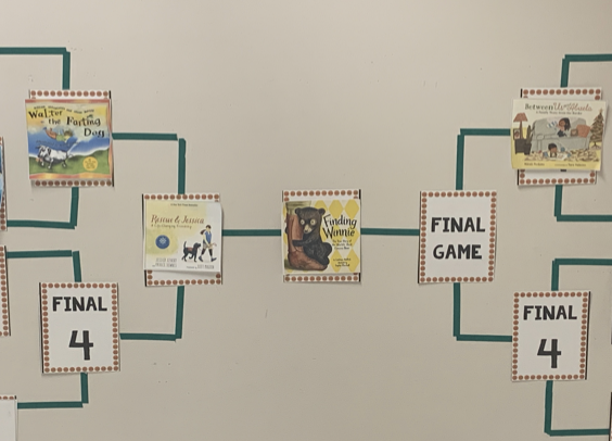 During the last four weeks, students in Mrs. Bentley’s fourth grade class have been working on something special during their reading block! It was March Book Madness, and students worked their way through a bracket of books to narrow it down from sixteen contestants to one final winner. Students were excited by the book bracket in the hallway and would often want to go look at it throughout this process! The class started with an introduction of the Sweet 16 books with a Google Slide displaying the cover as Mrs. Bentley read aloud a brief paragraph summarizing each book. Students voted and narrowed it down to the Elite 8. Students were then split into groups where they read the book assigned to them and completed their own Google Slides presentation to share with the class. After narrowing it down to the Final 4, Mrs. Bentley read the books to the class and students completed a book review for each. Then there was a vote to determine the final match, which was Rescue and Jessica by Jessica Downes and Patrick Henkes versus Finding Winnie by Lindsay Mattick – both true and heartwarming stories. These two books the students chose over all the others truly goes to show how thoughtful and compassionate these kids are. The class then reread the books and students chose a character to analyze deeper through the character’s words, thoughts, actions, and character traits. Then students completed a March Book Madness opinion organizer before making their final vote. The class’ big winner was Finding Winnie! #WeAreRSU18