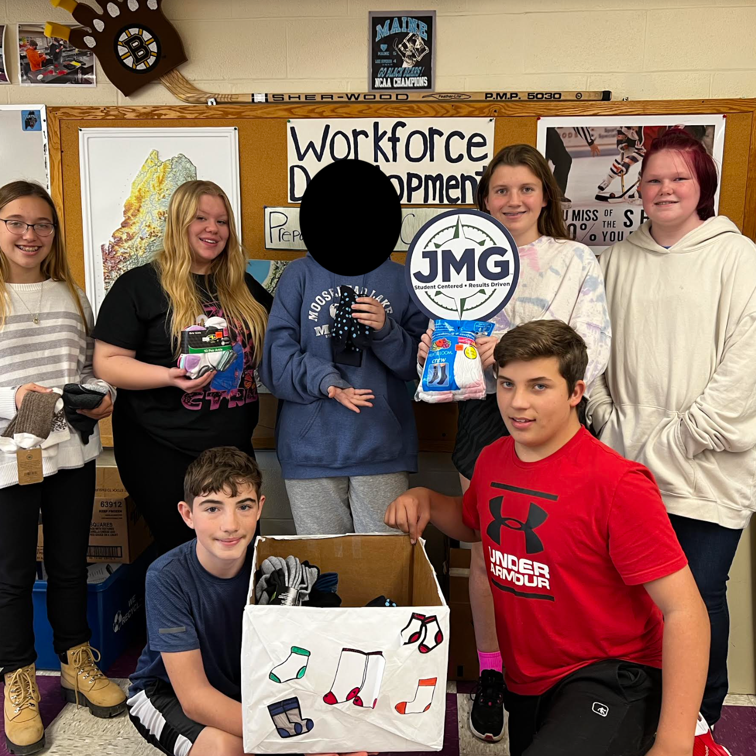 During the month of October, JMG took the lead in collecting new pairs of socks for the Socktober Sock Drive. Students in JMG at CMS made posters, flyers, and collection boxes that were hosted at CMS, Messalonskee Middle School, Erskine Academy, and Bar Harbor Bank and Trust in China. The Maine Children’s Home Christmas Program is the recipient of the donated socks. In total, 600 pairs of socks were collected. Thank you, community, for your tremendous support! #WeAreRSU18 #ChinaClippers